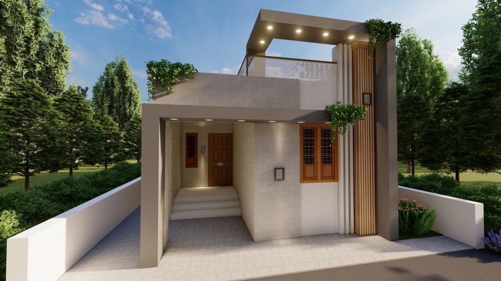 A standard private structure of cottage type with has a drawing room, lounge area office room, visitor room, kitchen room, store, storeroom, changing area, restroom, front verandah, step and so on, for other house, the number of rooms might be decreased.
